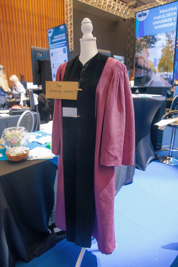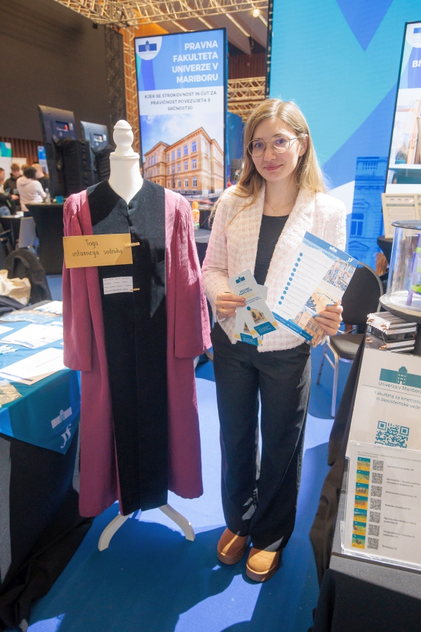 Na razstavnem prostoru Pravne fakultete Univerze v Mariboru so se lahko obiskovalci dogodka preizkusili v poznavanju prava s pravno križanko, pravnim rebusom ter z odgovarjanjem na kratka vprašanja s pravno vsebino v igri "Nepoznavanje prava škoduje". Na ogled smo postavili tudi togo upokojene ustavne sodnice, dr. Etelke Korpič-Horvat ter dijakom in dijakinjam predstavili karierne možnosti po zaključku študija na naši fakulteti. Obiskovalci so pokazali veliko zanimanje za študij prava v univerzitetnem mestu Maribor ter od prodekanice študentke Lise Elizabeth Strouken in študenta Blaža Bukovca prejeli veliko koristnih informacij o poteku predavanj in vaj, izpitnem obdobju, težavnosti študija, tutorskem sistemu, štajerskih čagah in prijetnem vzdušju na fakulteti.