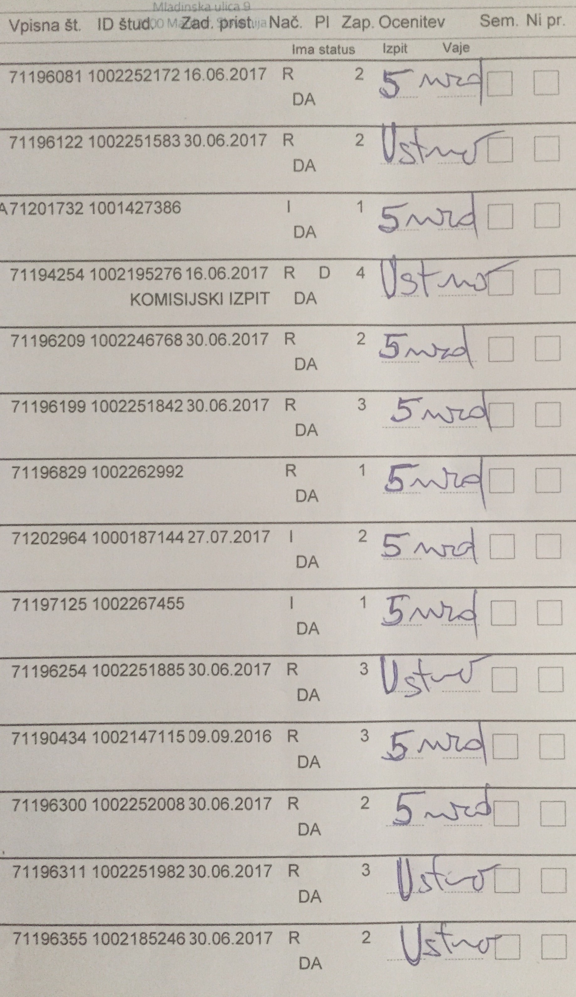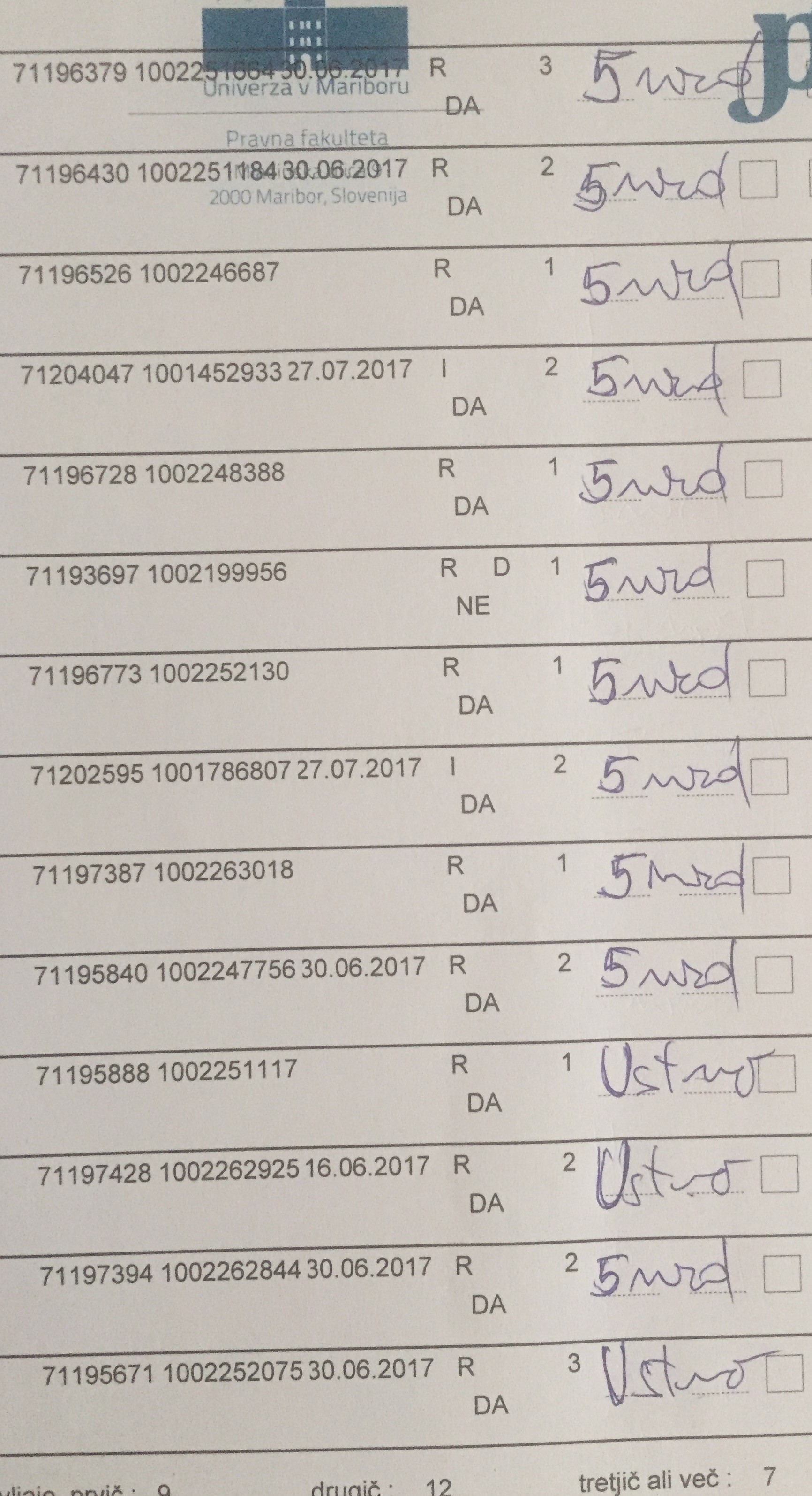 Ustni del izpita bo v ponedeljek, s pričetkom ob 9.00 uri.